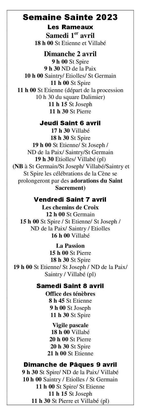 Horaires des messes dominicales et de semaine - année pastorale 2023