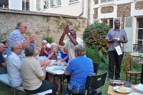 Ce temps très convivial a permis de se retrouver et aussi de dire au revoir au Père Faustin Lekili et à Gérard Henry, diacre,qui nous quittent. Qu’ils soient tous deux remerciés pour leur action auprès des paroissiens de Saint Germain dont le Père Faustin avait la charge, et auprès des gens du voyage, accompagnés depuis plusieurs années par Gérard.