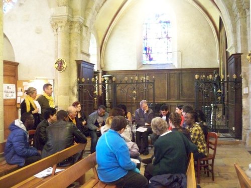 Après que chacun ait dégusté avec joie un goûter géant préparé par les équipes de toutes les paroisses du secteur, le presbytère Saint Spire a accueilli un grand nombre d’enfants dans ses salles, pris en charge par les animateurs du catéchisme et de l’éveil à la foi, et les parents, très nombreux, se sont tous retrouvés dans la cathédrale, heureux de se rencontrer et de partager en petits groupes autour de quatre ateliers, dont les thèmes portaient sur :