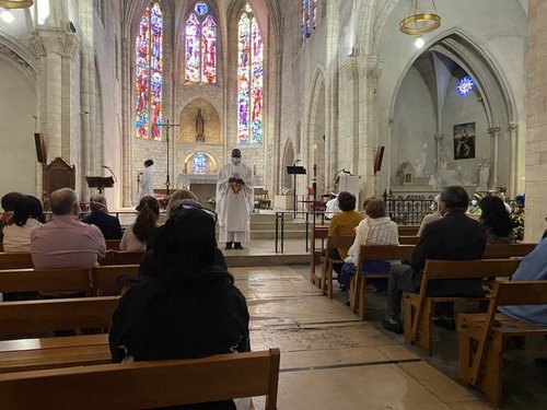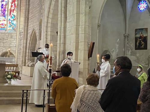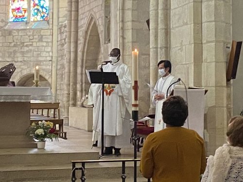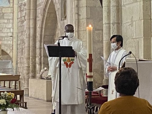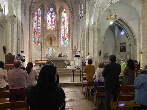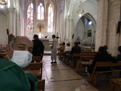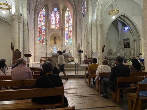Première messe aprés le déconfinement à St Spire 24 mai 2020